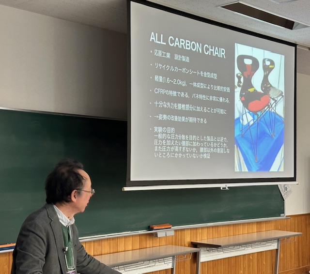 日本人間工学会 中国・四国支部大会で発表しました。 カテゴリー: 新着情報 | 投稿日: 2025.12.7 | 投稿者: 応原工業株式会社 2025/12/6(土) 岡山県立大学学部共通棟において開催された 日本人間工学会 中国・四国支部大会で当社が広島国際大学 石原茂和教授と 研究しているCFRP座椅子およびALL CARBON CHAIR2について発表しました。